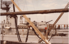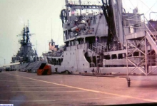 La Saône à Norfolk en février ou mars 1974, accostée au cul d'un croiseur lourd de l'US Navy (Photo : A. Franc)