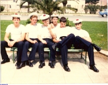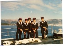 1980 : La garde d'honneur au repos. Les marins de poste avant babord.