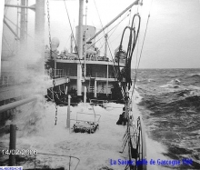 Tanguage, l'arrière s'enfonce, les hélices sortaient de l'eau.