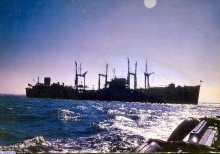 1982 : La Saône pour sa derniére traversée .....vers Port Avis (Iles du Levant) où elle servira de brise lames. (photo X)
