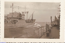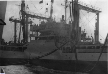 La Saône dans sa première configuration de pétrolier ravitailleur (antérieure à 1963). Elle n'a pas encore de pont pétrolier et ne dispose que de 2 portiques légers de ravitaillement. (Commentaire : Daniel Maurice. Photo : X)