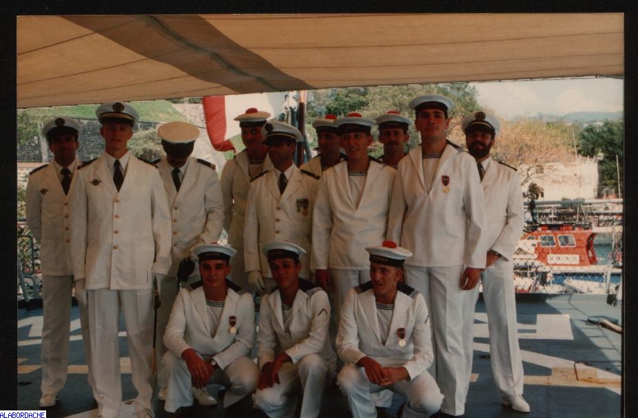 |  equipe de manoeuvrier sur le rhône en 1989 après remise de médaille"defense nationale"