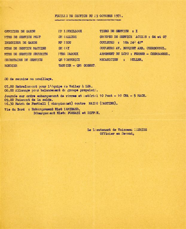 |  Bureau Machine 1971 ... QM Rivière;MP Tréguer;SM Bécam;Me Kervarec;MB Fornari;OE2 L'Hostis